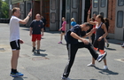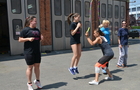 Kötelet ugrottak Bánhegyi Adriennel, kézilabdáztak Farkas Ágnessel, majd igazi férfias feladatokkal folytatódott a délután. Rövid crossfit edzést tartott Horváth András Attila, szombathelyi tűzoltó, majd Dancsó Zoltán, kilencszeres profi kick-box világbajnok, harmincszoros magyar bajnok adott ízelítőt adott a sportág szépségeiből. Mindezek mellől nem hiányozhatott a kettlebell, a tollas-, kosár-, és röplabda sem. Fiúk-lányok tekerték a csípőt, Rosta Sándor felettébb szórakoztató zenés-táncos zumba edzésén.