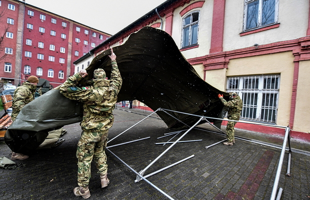 Katonák segítik március 30-ától 51 kórház vezetőit abban, hogy a koronavírus-járvány elleni védekezés érdekében a szükséges egészségügyi felszerelések, berendezések, gyógyszerkészletek és fertőtlenítőszerek megóvása biztosított legyen, valamint a járványveszéllyel összefüggő szabályok betartatása ne szenvedjen csorbát.