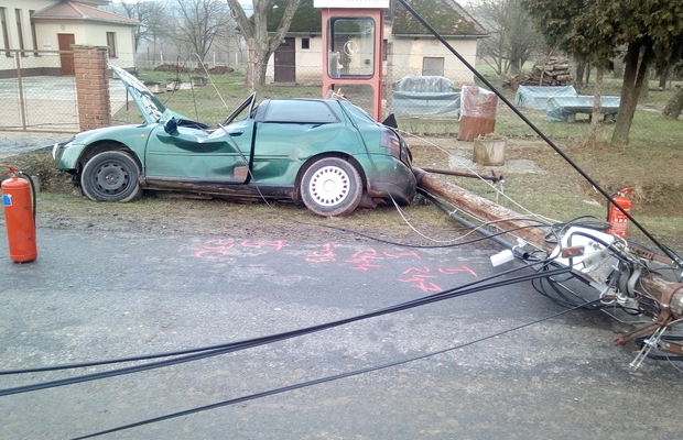Telefonoszlopot döntött az Audi - könnyűsérüléses baleset Orbányosfán