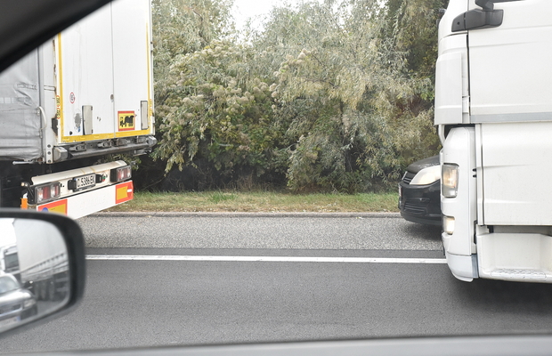 A Budapest felé vezető oldal leállósávján haladva mi is eljátszottunk a gondolattal, hogy a forgalom elől elzárt két sávon milyen jól lehetne haladni, de tett nem követte az elgondolást. Nem úgy, mint egy cseh rendszámú, sötétített üveges Mercedes esetében, amelynek sofőrje nem látott kivetnivalót a lezárt sávok használatában és amíg a kocsisor mindkét irányban állt, addig ő laza tempóban elhajtott a sor mellett.