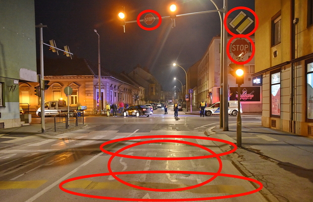 Néhány havonta meggörbíti a gyalogosokat védő korlátot egy-egy személyautó, rendre a vétlen járműve, amit a vasútállomás felől érkező és Stop-táblát figyelmen kívül hagyó járművezető gépkocsija lök neki.