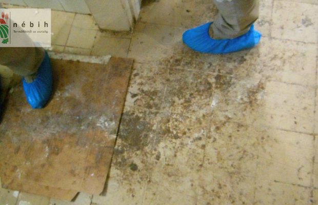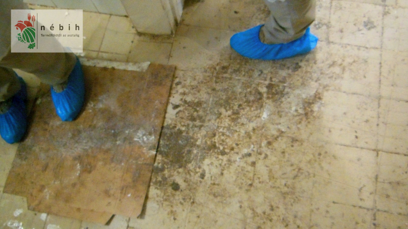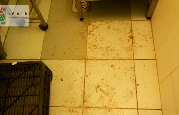 Az üzembe lépve áldatlan állapotok fogadták az ellenőröket: több napos kosz ragadt a padozatra, takarítatlan eszközök hevertek szanaszét, hiányzó csempedarabok és málló vakolat jellemezte a helyiséget.